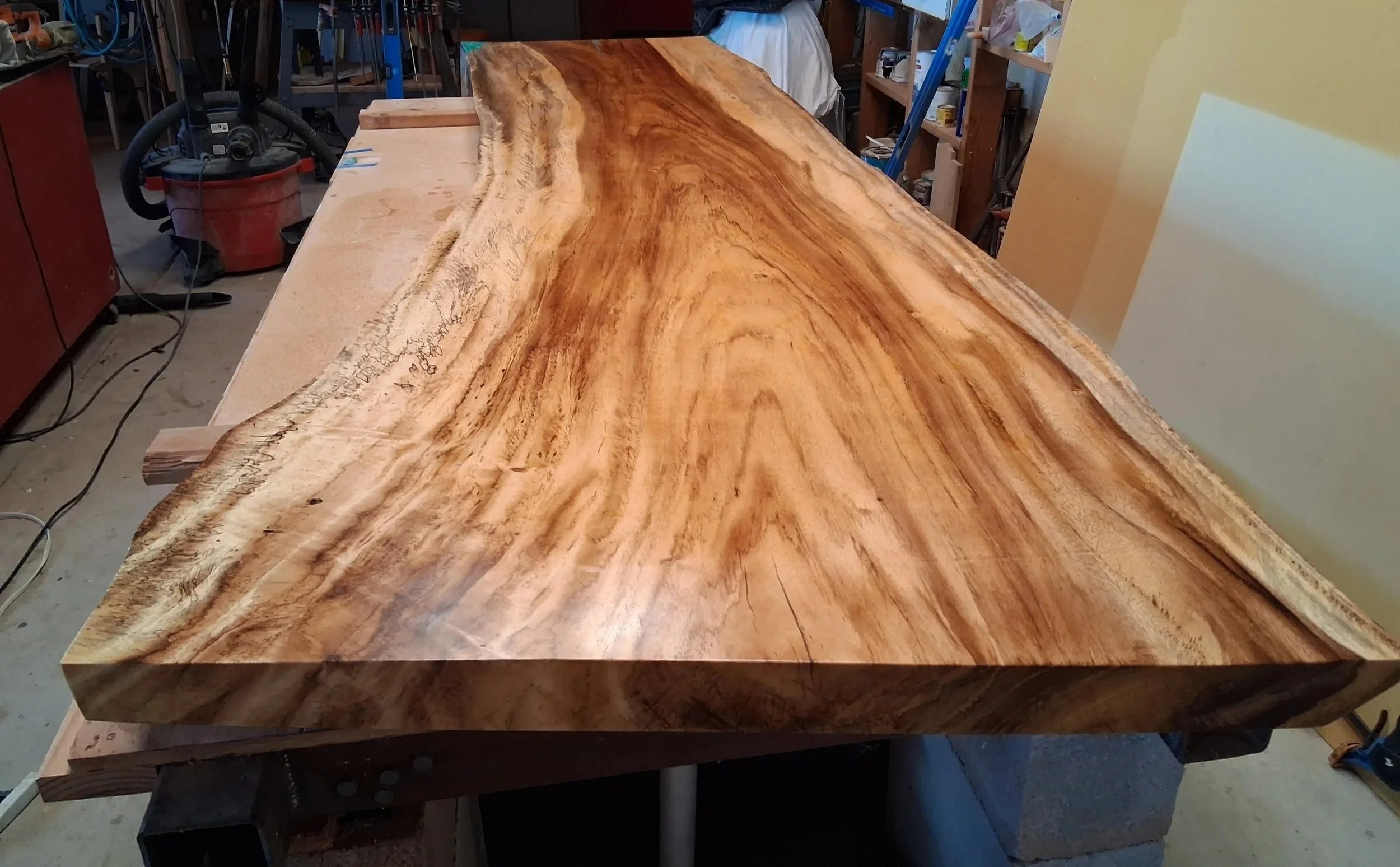 Waterfall table, Parota wood, 120” x 42” x 2.5”