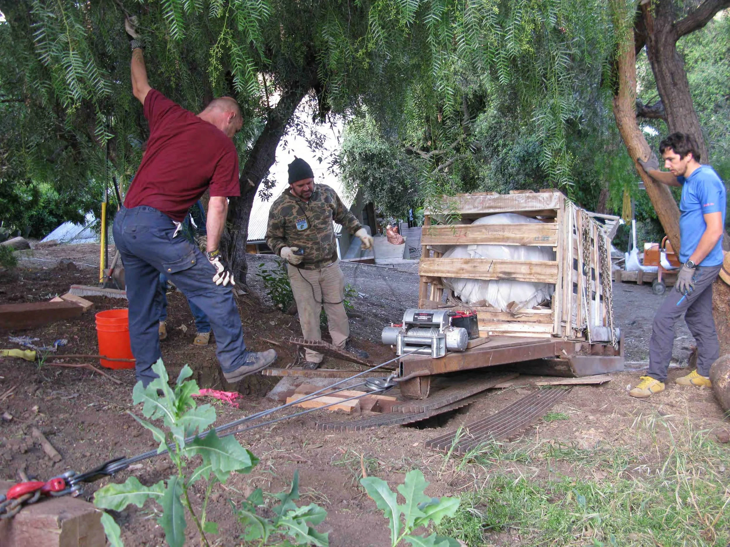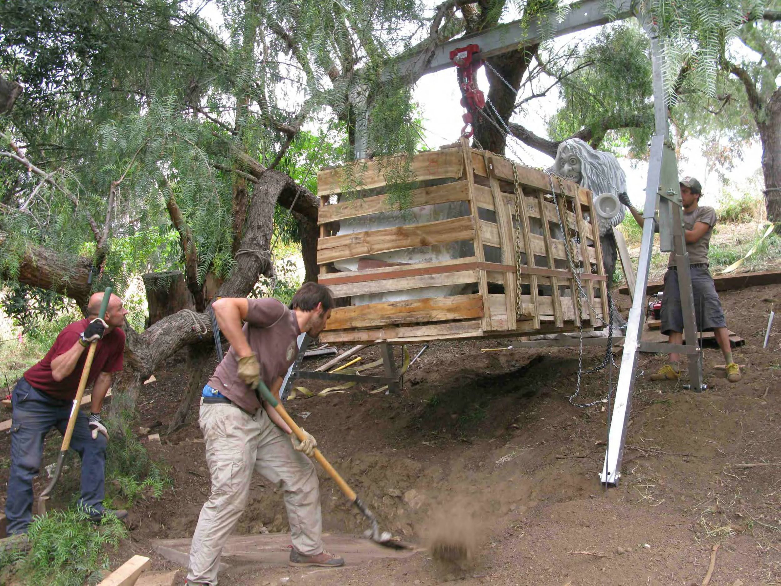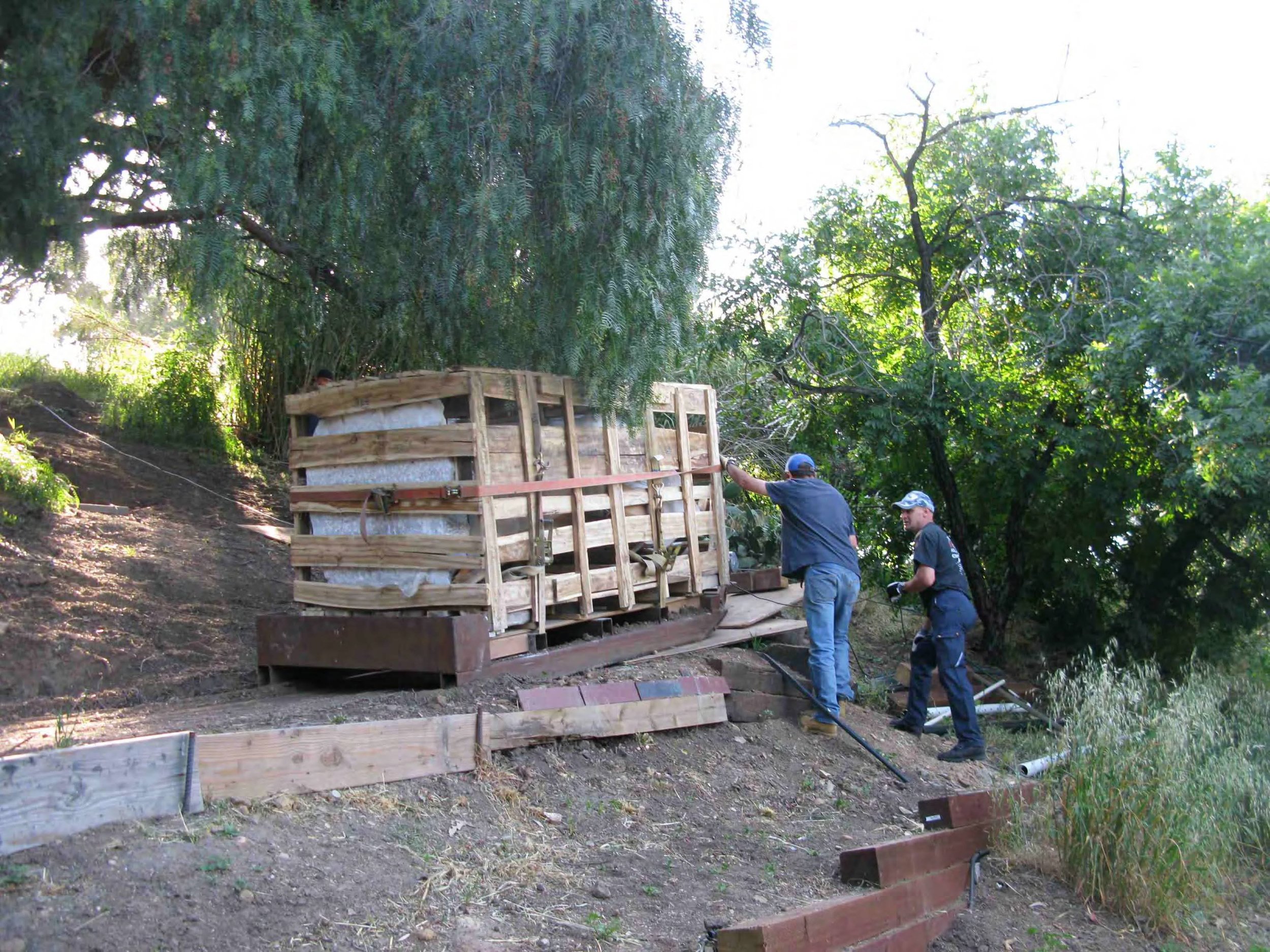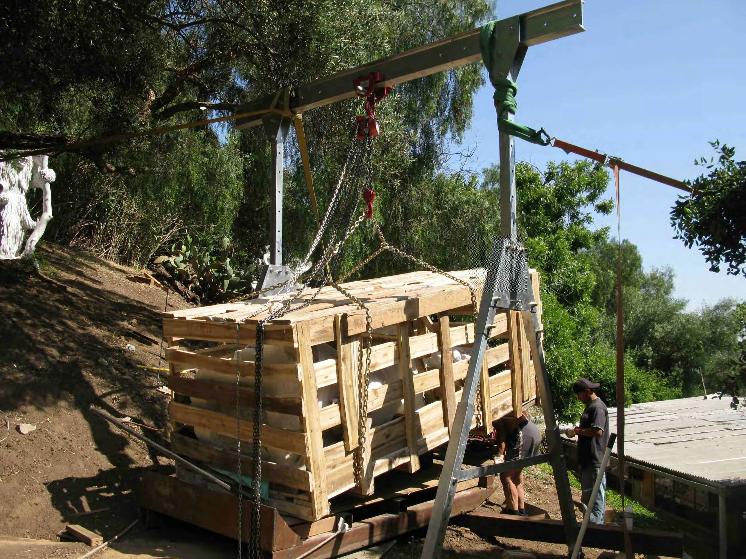 Transporting and installing 54 marble sculptures on a steel hill with no access for power equipment such as cranes or backhoes. It took us 2 months, including site development, concrete foundations for all the sculptures, moving them by sled into position and erecting the units. No damage and no accidents, thanks to a exceptional crew!