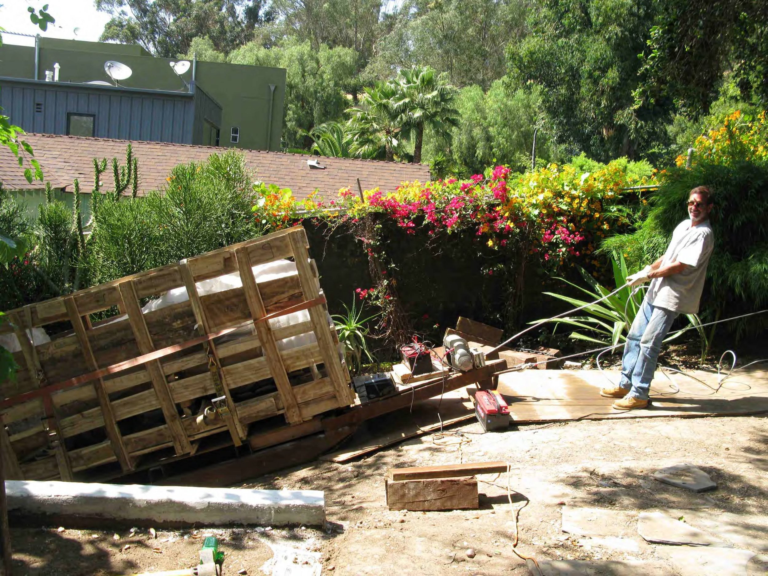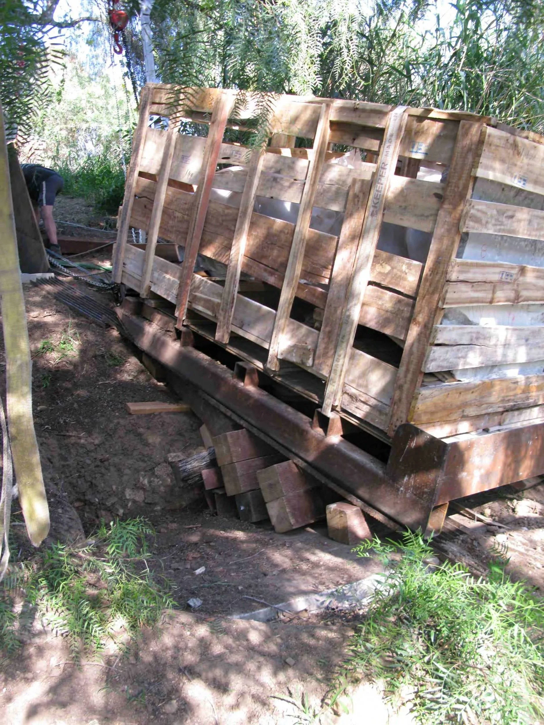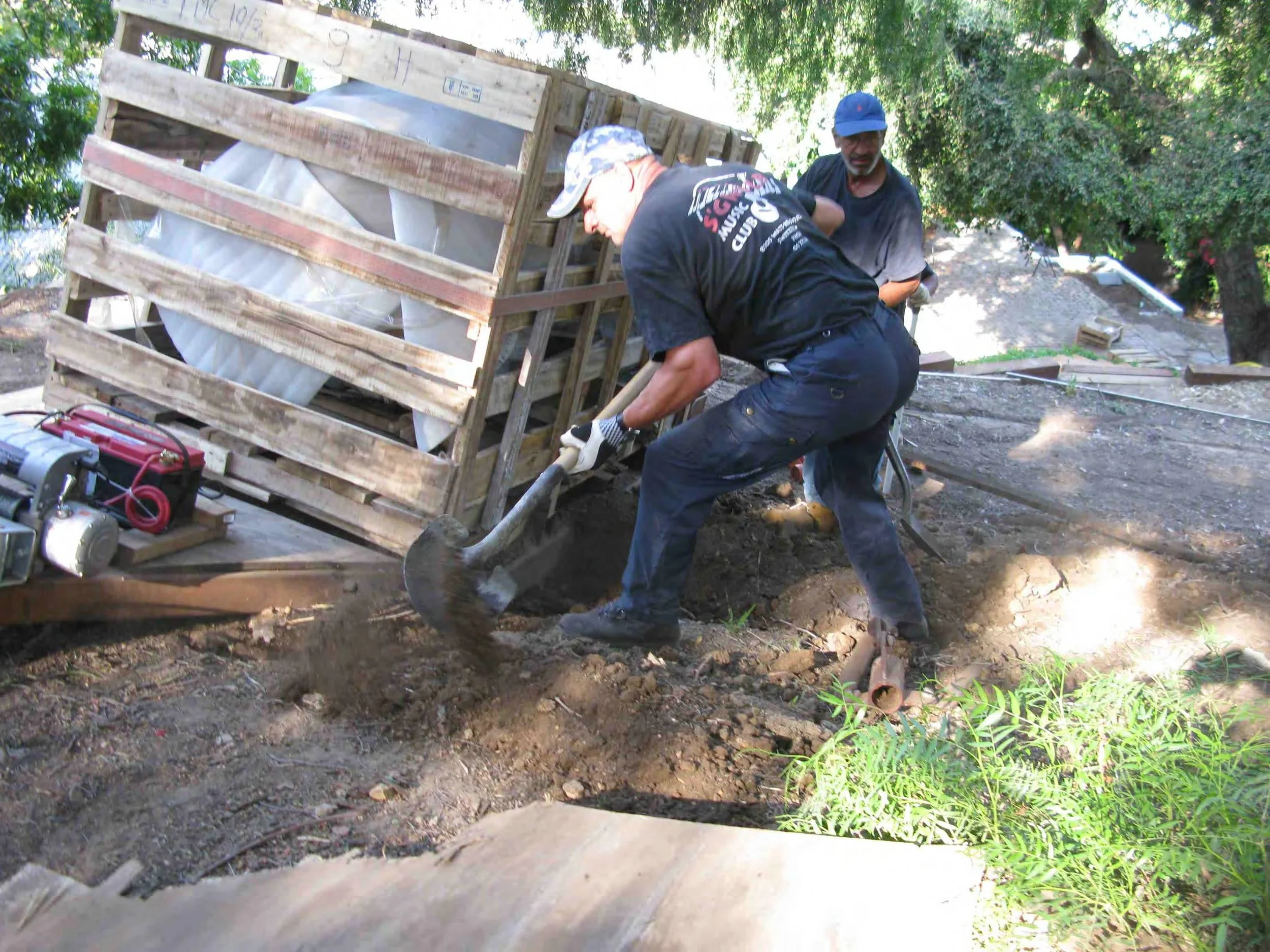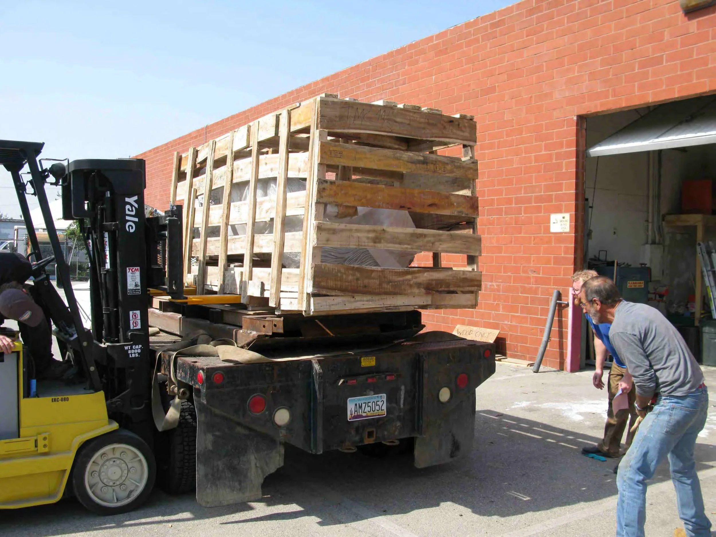 Transporting and installing 54 marble sculptures on a steel hill with no access for power equipment such as cranes or backhoes. It took us 2 months, including site development, concrete foundations for all the sculptures, moving them by sled into position and erecting the units. No damage and no accidents, thanks to a exceptional crew!