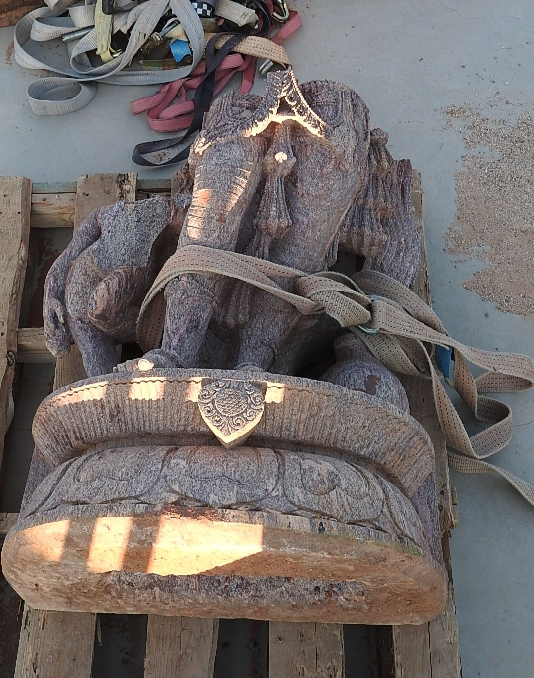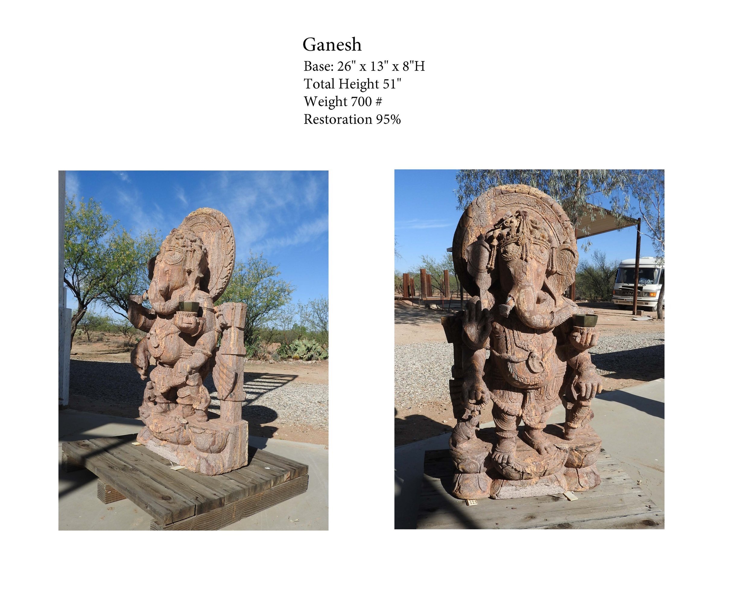 Many years ago, my neighbor, an Indian citizen, imported a container full of historic Hindu Sculptures. He parked the sculptures in his backyard, unprotected, fully exposed to the Arizona weather, heath, rain and sometimes freezing temperature. My neighbor then got ill and his plan of exhibiting the sculptures at the Tucson Gem Show had to be postponed. In the meantime, some the sculptures fell over, some fell apart standing and every year, the harsh reality of rain and freezing temperatures took its toll. I offered him to bring them to my shop and save as many as I could muster, by reconstruction and re assembling the figures. After my neighbor died, I ended up with the sculptures. Some of them are for sale.